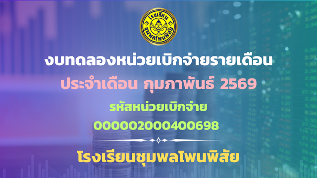 รายงานงบทดลองหน่วยเบิกจ่ายรายเดือน กุมภาพันธ์ 2569