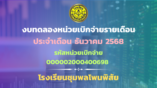 รายงานงบทดลองหน่วยเบิกจ่ายรายเดือน ธันวาคม 2568